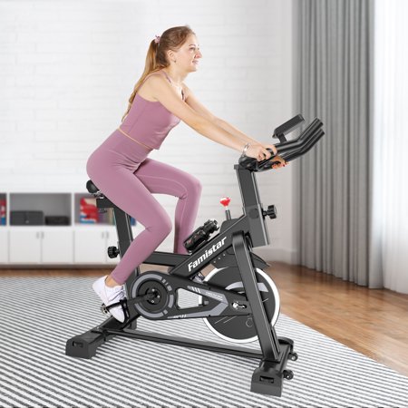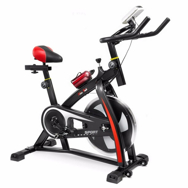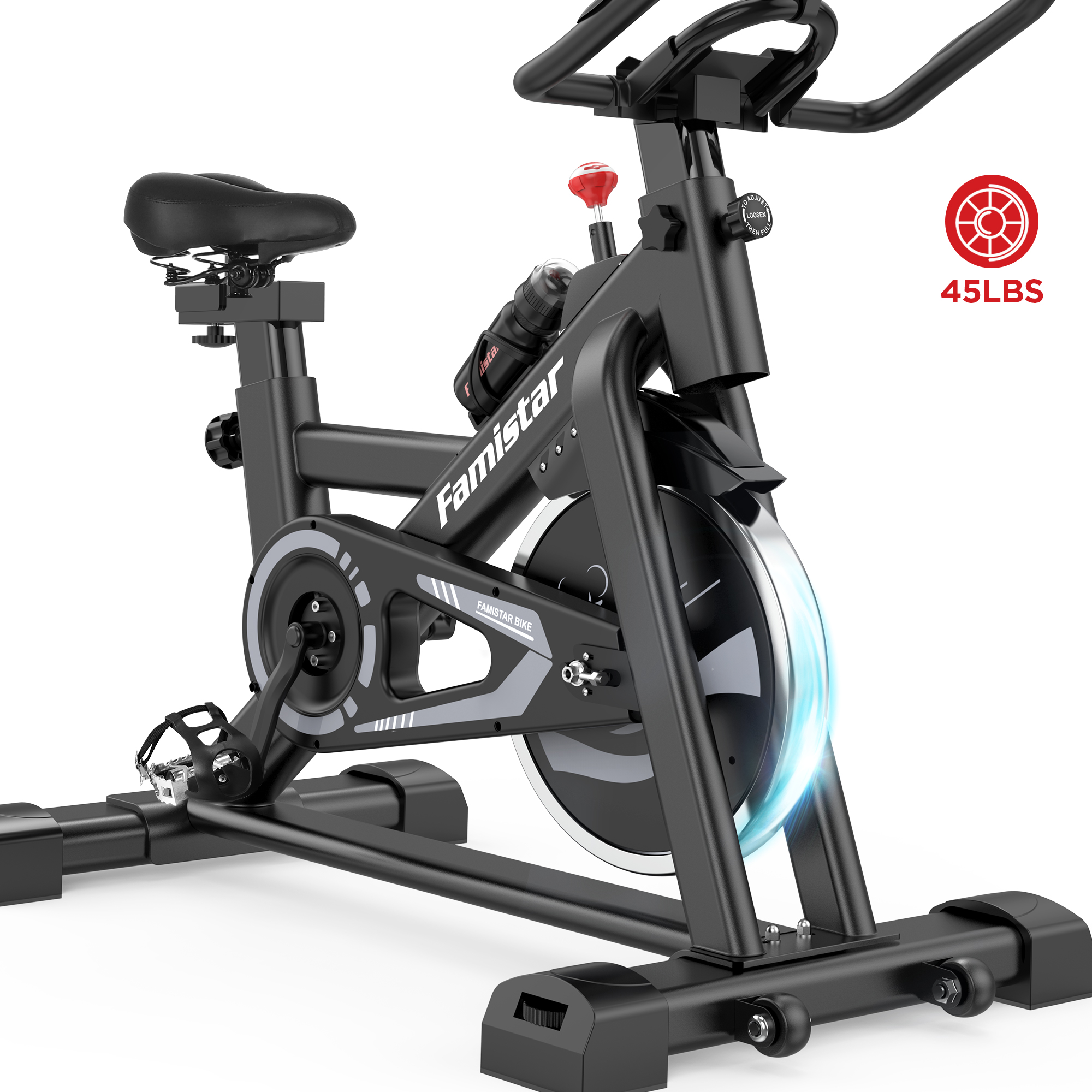 Famistar Stationary Exercise Bike With 45lbs Stable Flywheel Water Bottle As Gift Lcd Display Adjustable Resistance Phone Holder Smooth Quiet Belt Indoor Cycling Bicycle For Home Red Walmart Canada